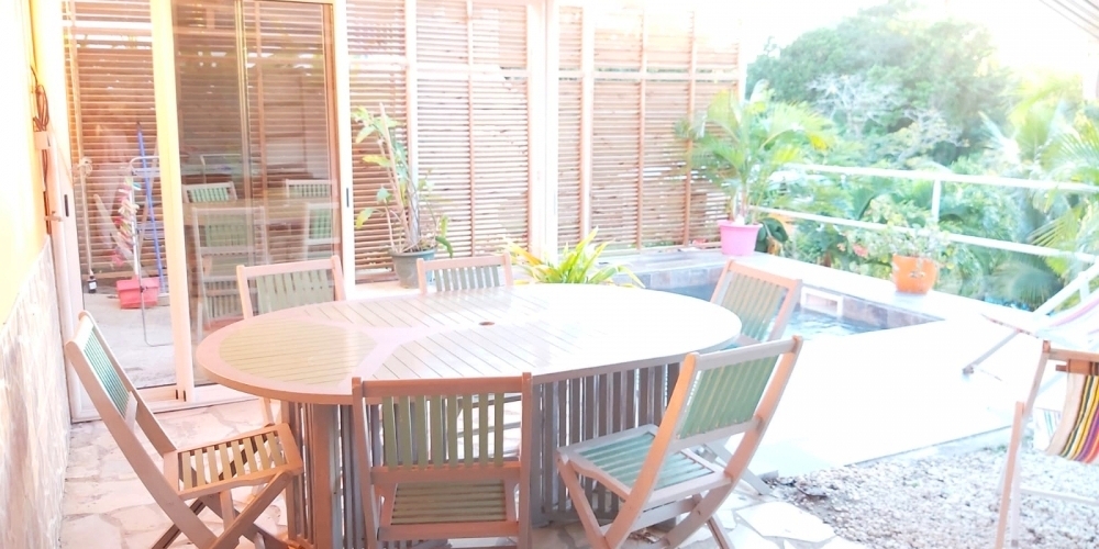 Jardin/terrasse : le logement se trouve sur une grande propriété arborée et fleurie (cocotier, citronnier, bananier, mandarinier, canne à sucre, rose de porcelaine, oiseau du paradis...). Barbecues électriques et à charbon à votre disposition.