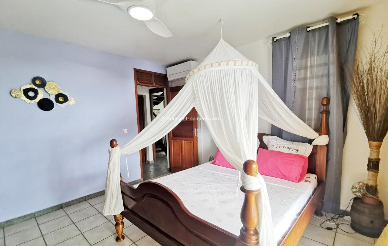 Climatisation : oui dans 2 des 3 chambres. Toutes les chambres sont équipées d'un brasseur d'air au plafond (l'endroit en haut d'un morne est naturellement très ventilé).