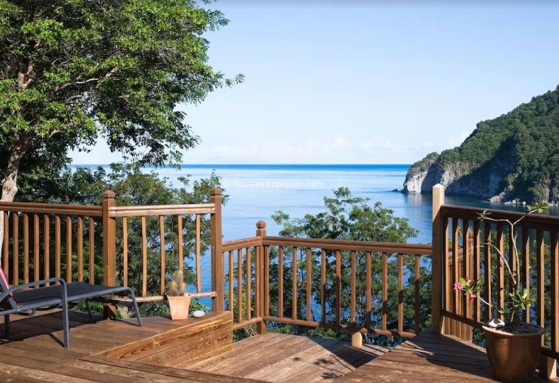 Agencement de la villa : la villa s'agence sur 2 niveaux. L'entrée se fait par le niveau supérieur, pour arriver au grand salon doté de baies vitrées et balcon. Sur le même niveau se trouve la chambre de maître (lit double en 160) avec salle de bain spacieuse et balcon. Le niveau inférieur est composé de la seconde chambre avec ses 2 lits individuels en 90, sa propre salle de bain et son accès direct vers l'extérieur. La cuisine entièrement équipée s'ouvre sur le deck, la salle à manger et le salon extérieur. Sur un deck ensoleillé dominant la baie vous trouverez un autre coin repas sous pergola avec une vue imprenable sur le Gros Morne et l'île de Montserrat. Toutes les pièces de la maison ont vue sur la mer.